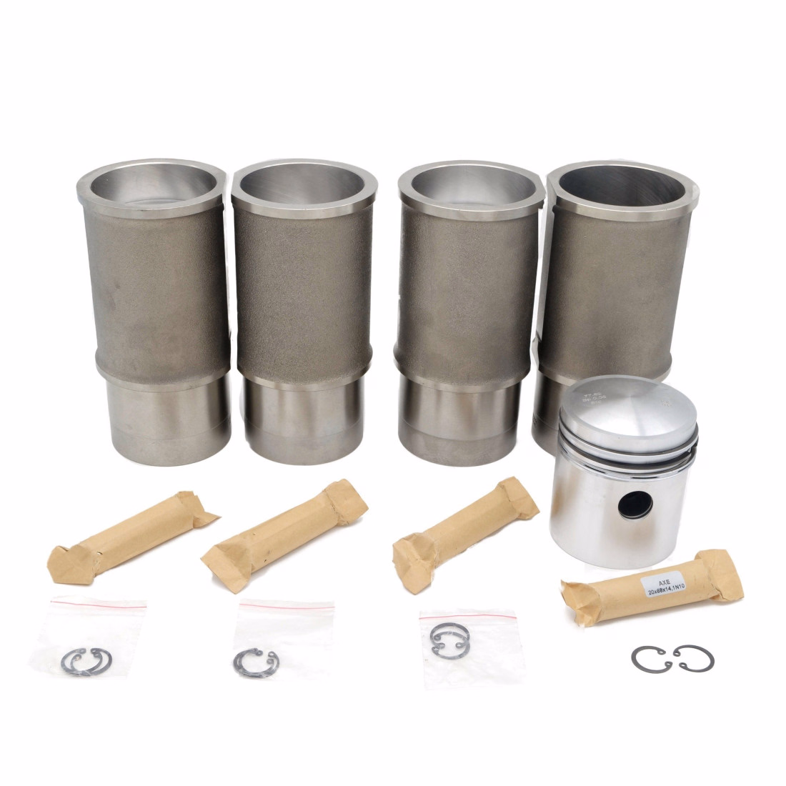 - 4 chemises et pistons bombés (segments 2.5+2.5+4.5mm et axes inclus)